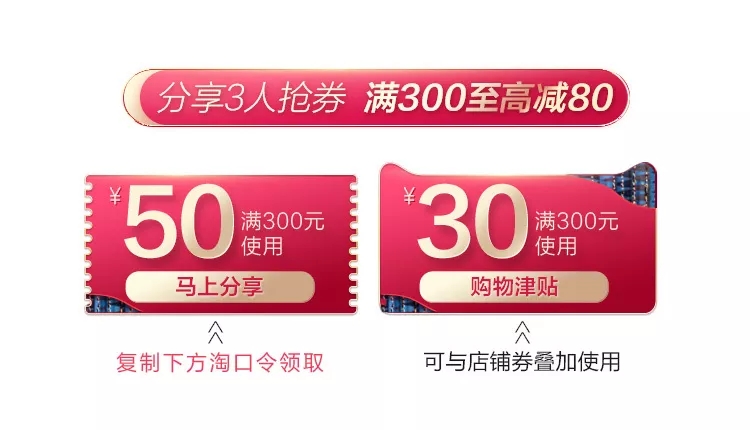 全店疊加購物津貼,至高可獲得滿300-80